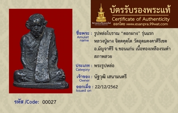 รูปหล่อโบราณ “ตอกผาง” รุ่นแรก